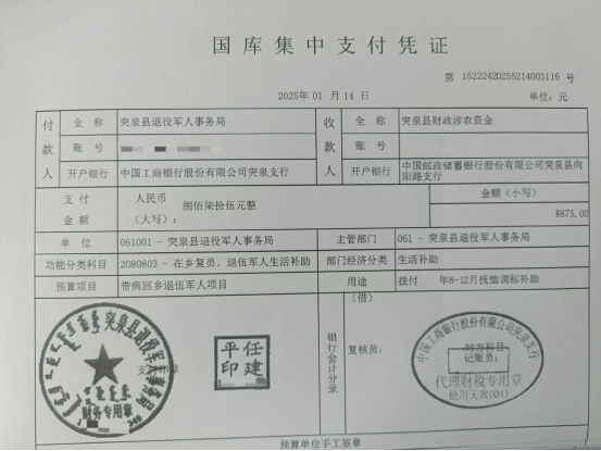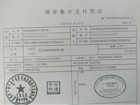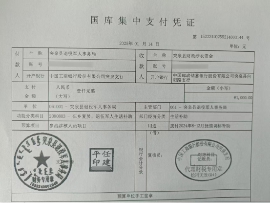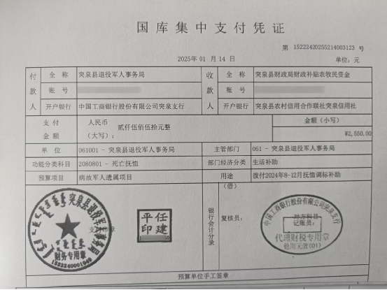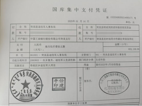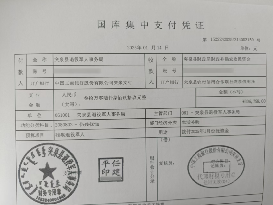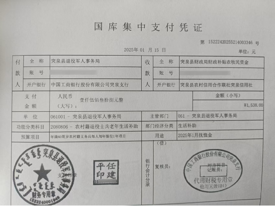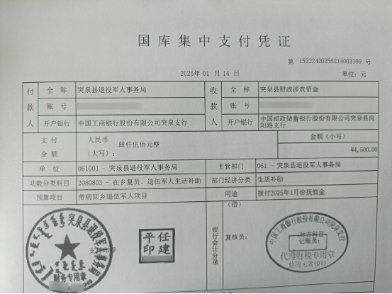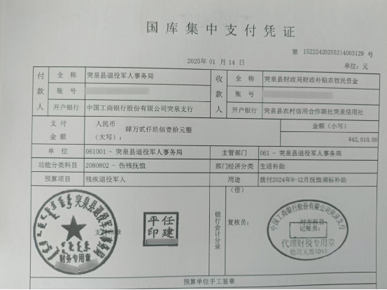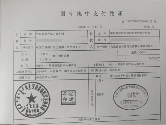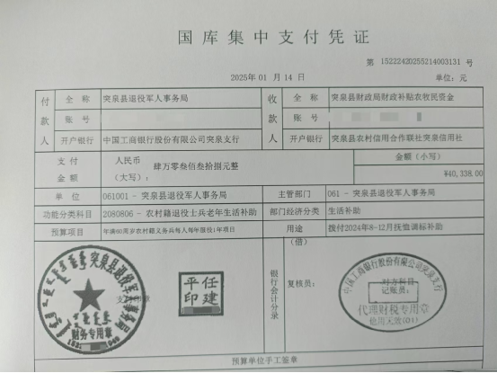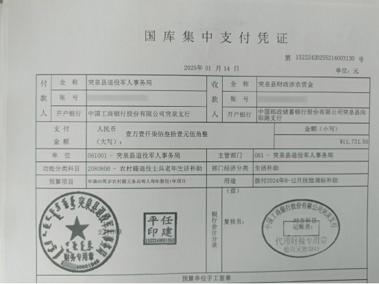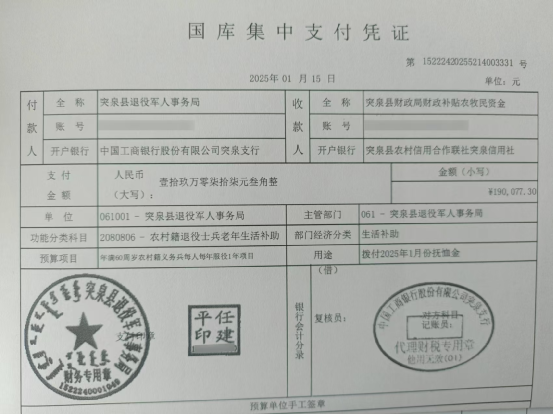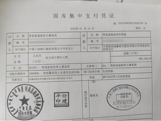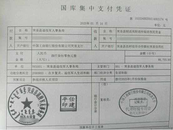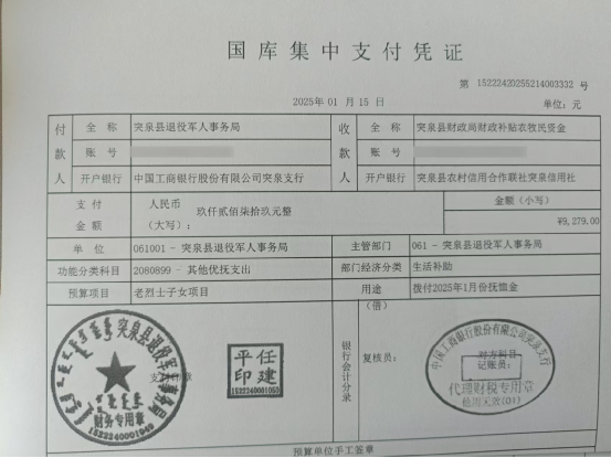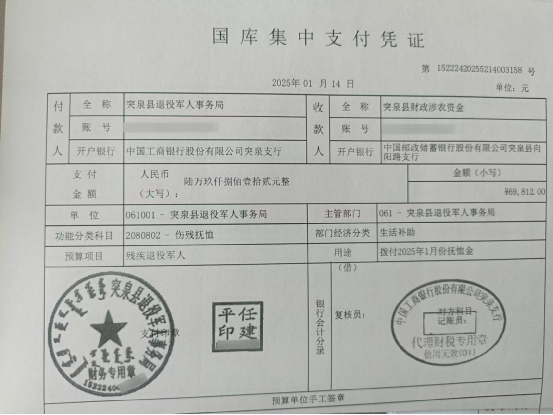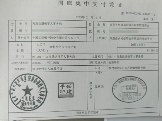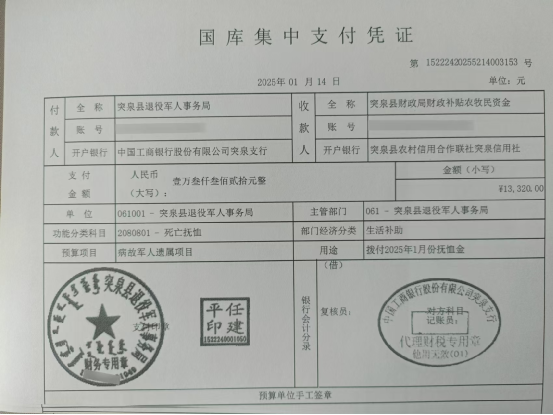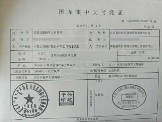 退役军人事务局2025年1月优抚抚恤清册