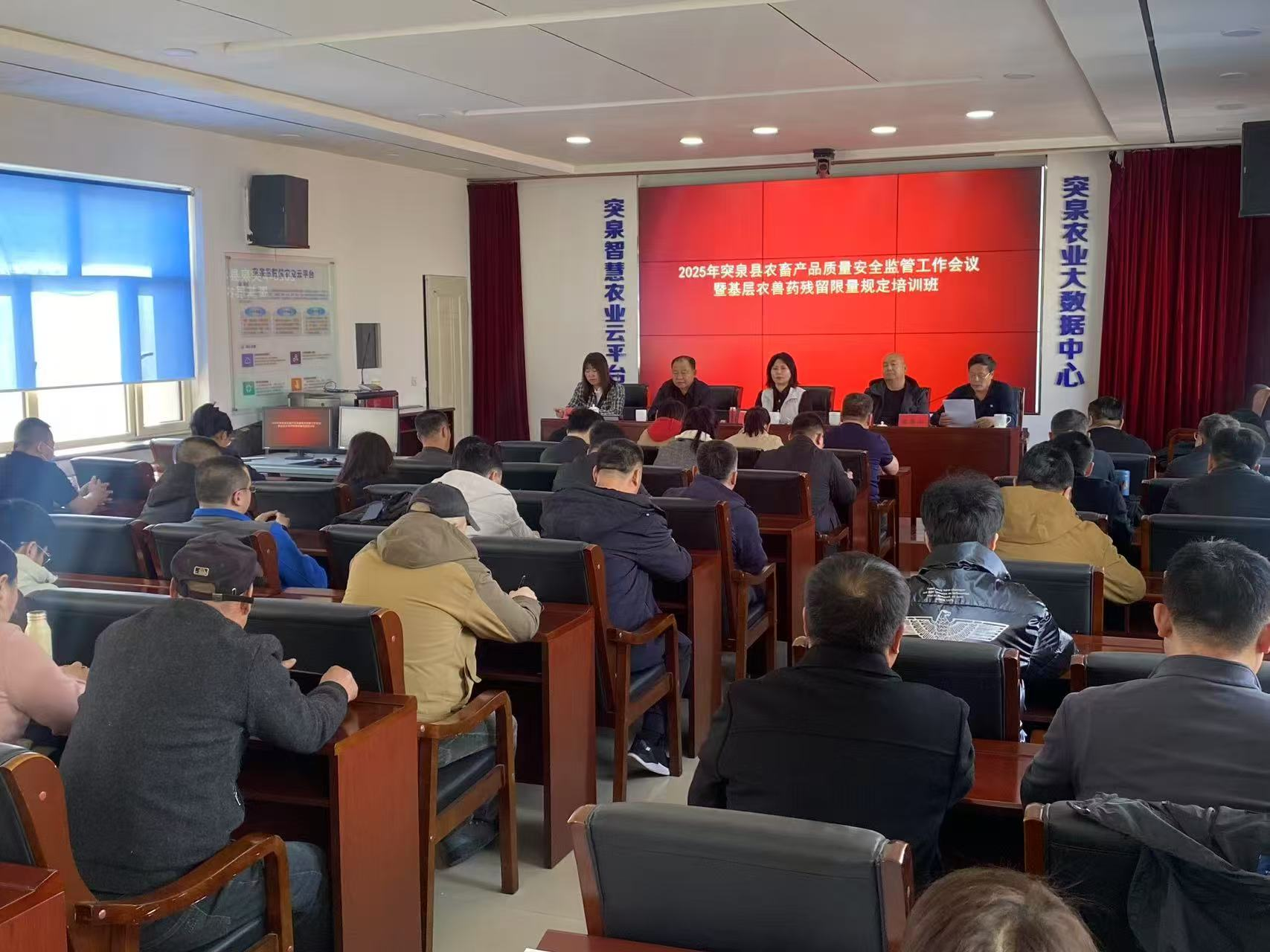 为传达落实全盟农畜产品质量安全监管工作会议精神,为全面推进2025年农畜产品质量安全监管工作,持续加强全县基层农畜产品质量安全监管队伍建设,切实提升基层农产品质量安全监管能力和技术水平,广泛提高农产品生产经营者的法律意识和限量意识,加快推进农兽药残留精准治理,从源头上保障农产品质量安全,全面推动我县农畜产品监管工作落实落细,3月12日下午突泉县农科局举办关于2025年突泉县农畜产品质量安全监管工作会议暨基层农兽药残留限量规定培训班。县农科局、教育局、市监局和各乡镇、赛银花园区、曙光园区分管负责人、各乡镇农畜产品安全监管人员、检测人员、农牧科技推广中心、农牧执法大队负责人和农畜产品质量服务中心全体成员、农资门店经营者、农产品生产者、农产品产地收购商代表等60余人参加会议。邀请盟农牧局监管科董艳丽科长、盟农畜产品质量监管中心张伊敏副主任参加此次会议。