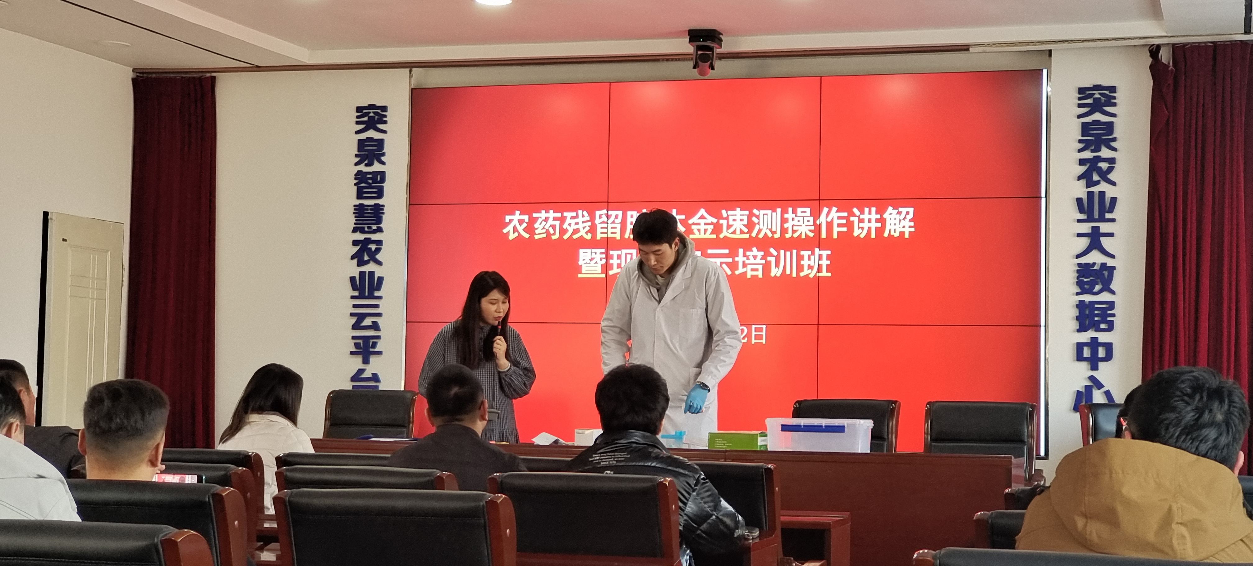 会后开展基层农兽药残留限量规定专题授课,农药残留胶体金速测操作讲解和现场操作演示对农产品质量安全法典型案例讲解。