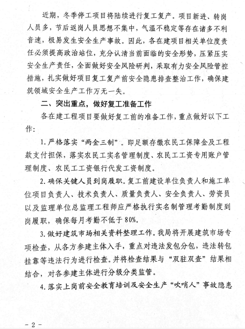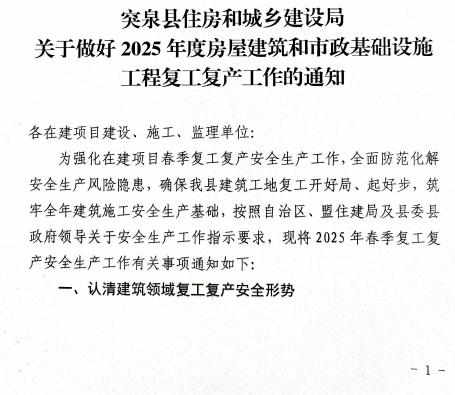 突泉县住房和城乡建设局关于做好2025年度房屋建筑和市政基础设施工程复工复产工作的通知