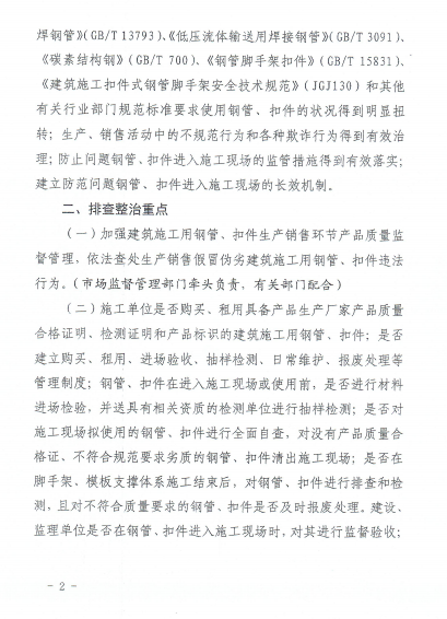 突泉县住房和城乡建设局关于转发《内蒙古自治区住房和城乡建设厅 市场监督管理局 应急管理厅关于开展建筑施工用问题钢管和扣件专项排查整治的通知》的通知