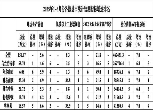 2025年1-3月份突泉县规模以上工业增加值,同比增长33.9%,增速在全盟6个旗县市中排第2位。(全盟增速8.3%)