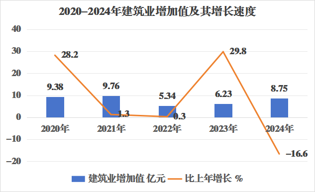全社会建筑业增加值8.75亿元,比上年下降16.6%。