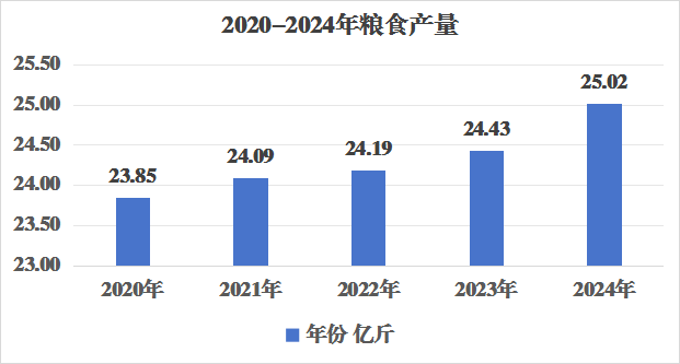 全年粮食作物产量25.02亿斤,比上年增长2.34%。其中,谷物产量24.54亿斤,比上年增长3.33%;玉米产量22.21亿斤,比上年增长5.44%;高粱产量1.76亿斤,比上年下降20.55%;豆类产量0.47亿斤,比上年下降48.85%;薯类(折粮)产量32万斤,比上年下降14.68%。