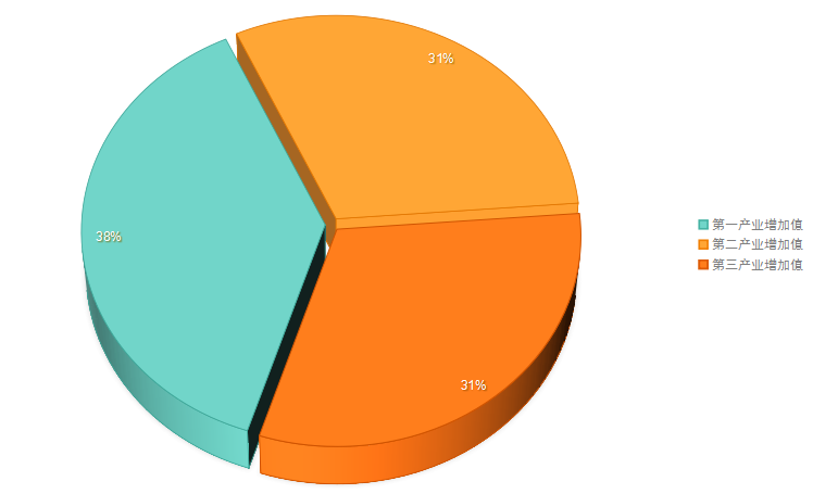 初步核算,全县实现地区生产总值1004317万元,按可比价格计算,比上年增长4.1%。其中,第一产业增加值382597万元,比上年增长4.5%;第二产业增加值308562万元,比上年下降3.8%;第三产业增加值313158万元,比上年增长9.9%。第一产业增加值占地区生产总值的比重为38.1%,第二产业增加值占地区生产总值的比重为30.7%,第三产业增加值占地区生产总值的比重为31.2%。人均地区生产总值45651元,按可比价格计算,比上年增长4.1%。