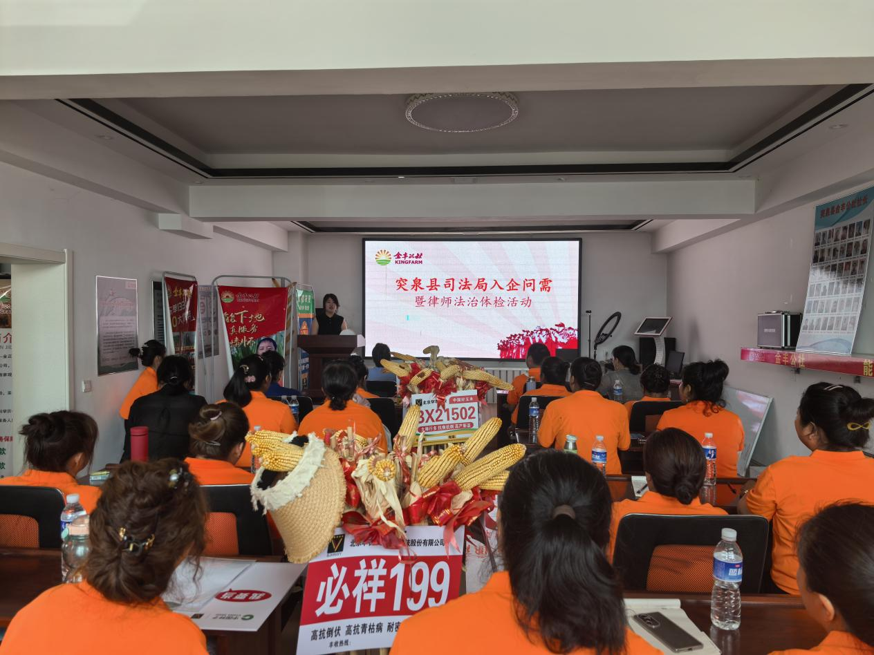 为进一步开展好规范涉企行政执法专项行动,优化法治化营商环境,营造“企有所呼,法有所应”的良好氛围。近日,应企业邀请,突泉县司法局组织行政执法协调监督股、律师和农牧业领域助企联络员到突泉县金丰农业服务有限公司和突泉县春雷农业生产资料有限责任公司开展入企问需暨律师法治体检活动。