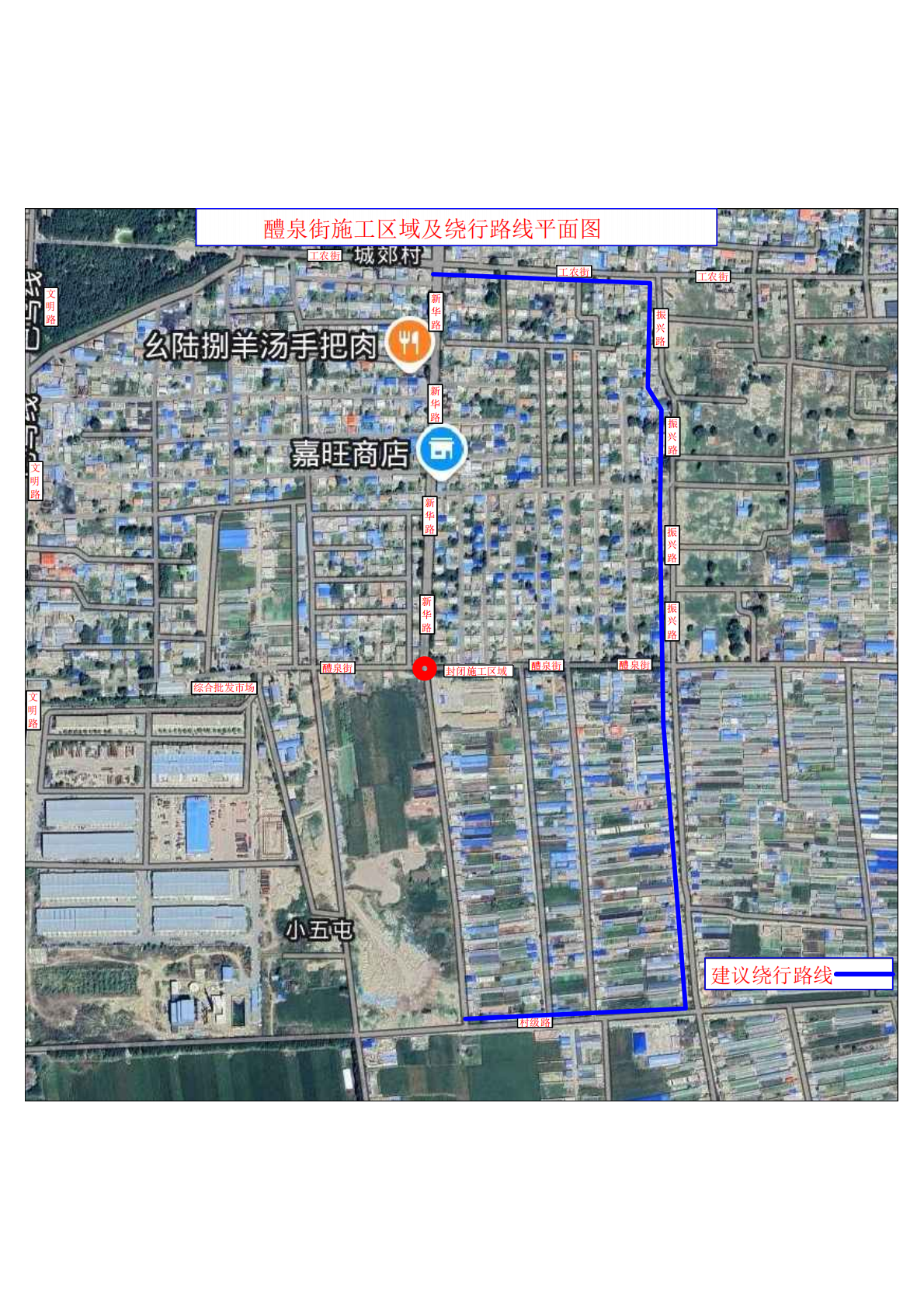 (二)由丁家屯或突泉镇大棚区沿新华路南端水泥路向北行至醴泉街(施工封闭区域)的车辆及行人,请行至村级路口(详见绕行标识)向东行驶至振兴路绕行。