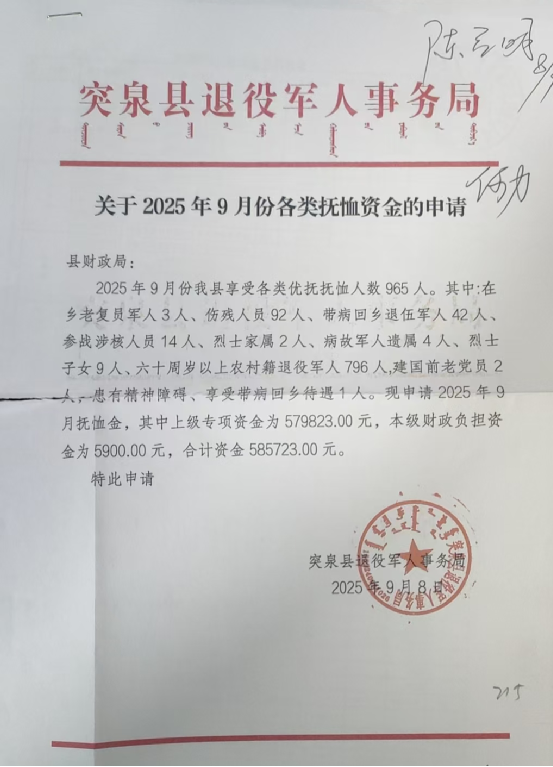 退役军人事务局2025年9月优抚抚恤清册