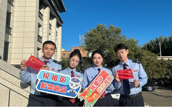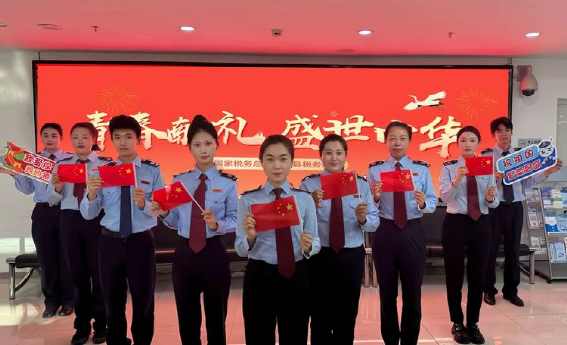 “愿得此身长报国,何须生入玉门关。”在突泉县税务局机关大楼前和办税服务厅,税务干部们身着制服,手持国旗,以“我与国旗同框”的形式开展“向祖国告白”活动。干部职工通过集体合影、个人创意拍照等方式,表达对祖国的深情告白。青年干部闫琦在镜头前动情地说:“每一次与国旗合影,都是对初心的叩问;每一句‘祖国万岁’,都是对使命的承诺。”干部们用行动表达着对祖国的祝福和对税收事业的期许,营造了浓厚的爱国氛围。