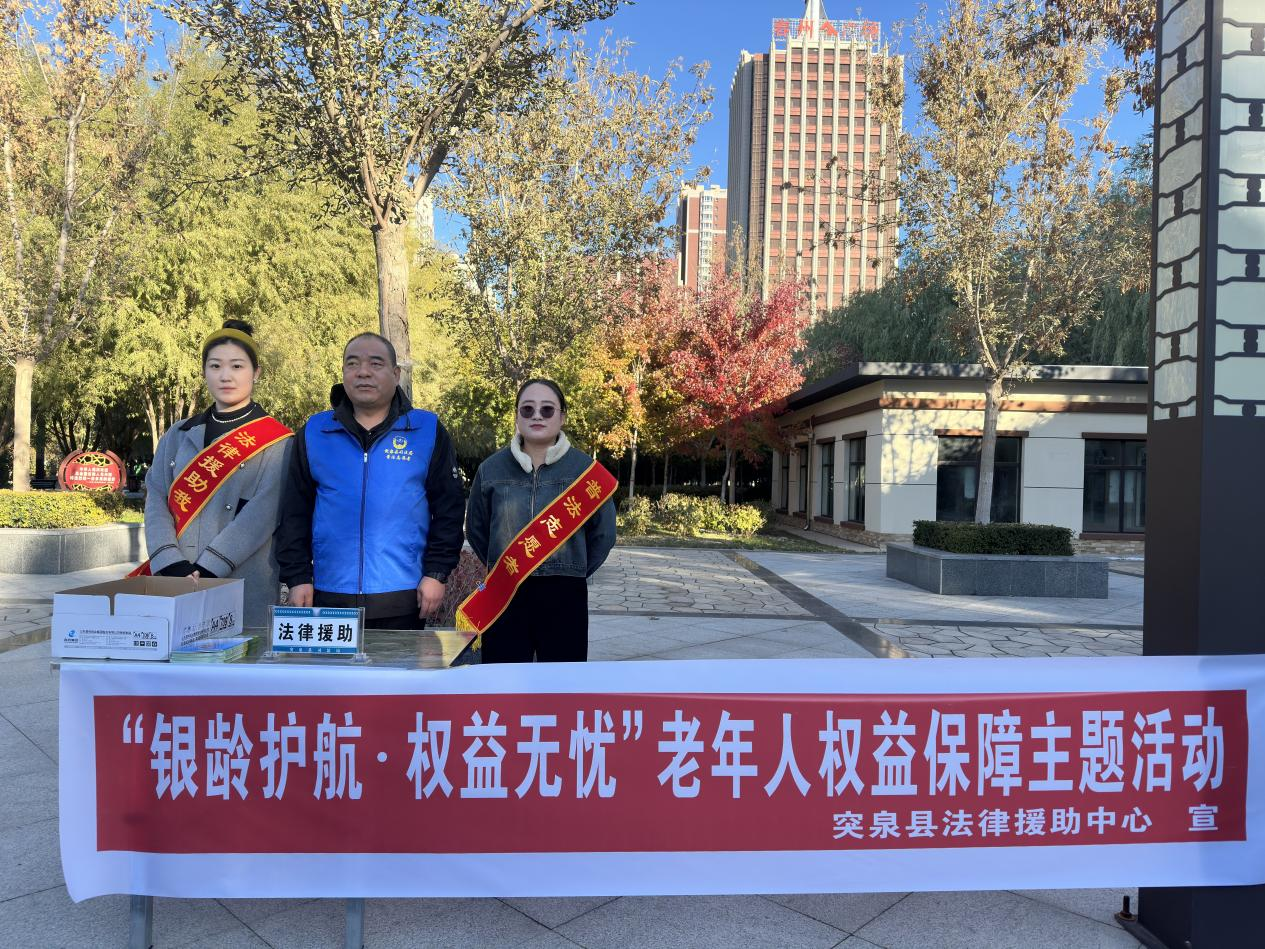10月22日,为增强老年人法律意识,切实保障老年人合法权益,突泉县法律援助中心携手友之托律师事务所、德彦律师事务所的法律援助志愿者,在县中心公园开展“银龄护航权益无忧”老年人权益保障普法宣传活动。