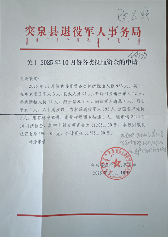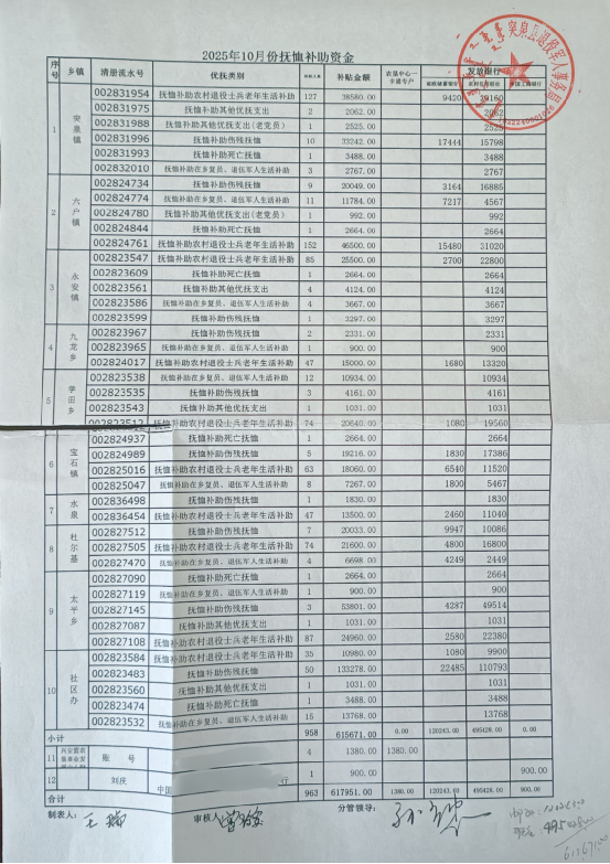 退役军人事务局2025年10月优抚抚恤清册