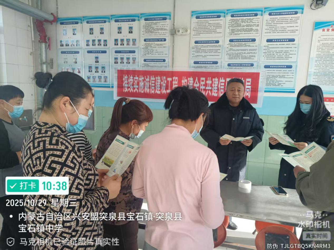 为进一步推进卫生健康领域信用体系建设,2025年10月29日,县卫生健康委组织县疾控中心(卫生监督所)以“接续实施诚信建设工程构建全民共建信用新格局”为主题开展信用宣传活动,通过主题宣讲、发放宣传册等形式,向广大教职工重点讲解《内蒙古自治区社会信用条例》《内蒙古自治区公共信用信息管理条例》等内容。