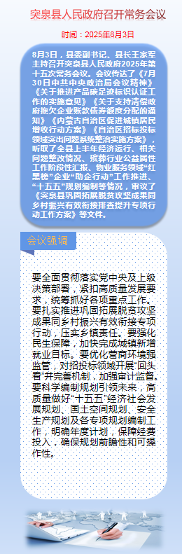 【图文解读】突泉县人民政府召开2025年第十五次常务会议
