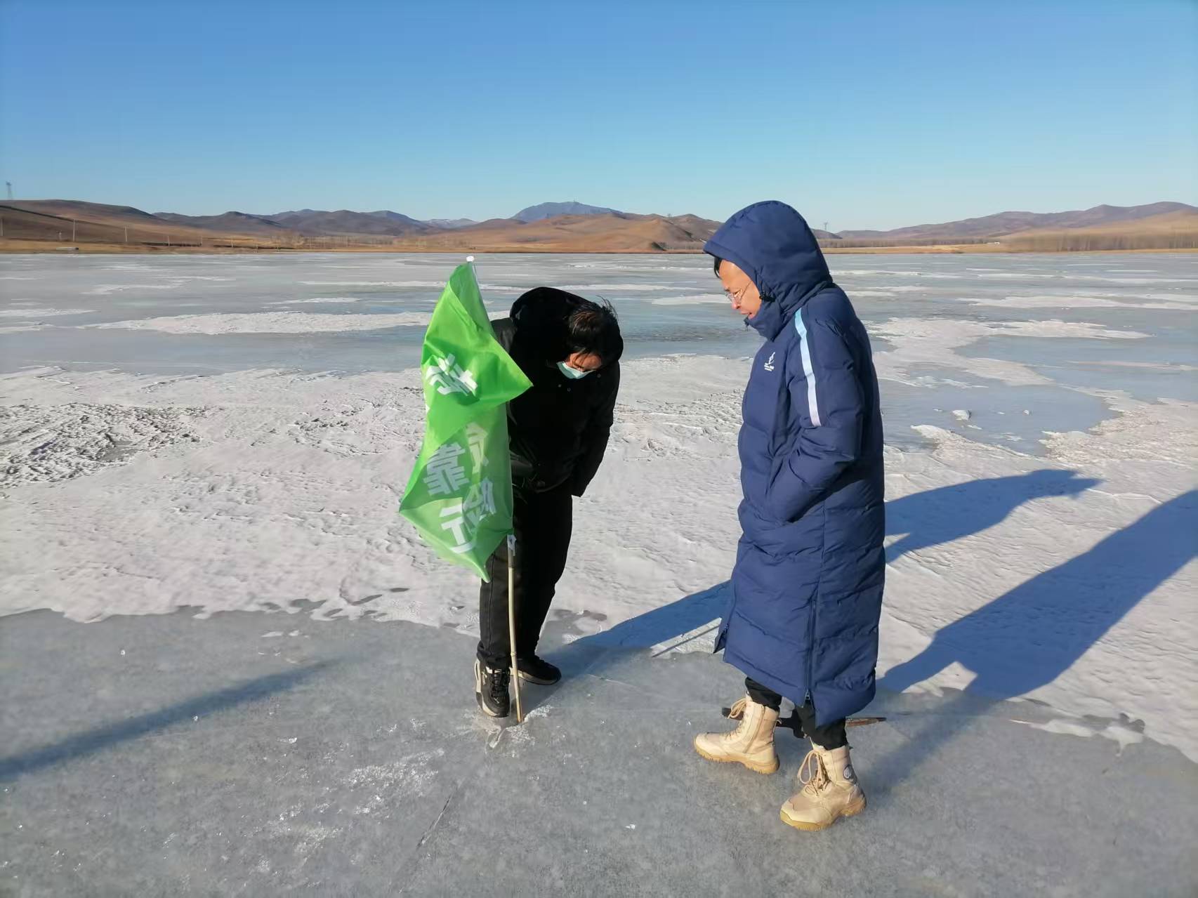 水库事务服务中心贾久成主任、张明泽副主任到牤牛海水库,检查安全生产工作,并对冰面安全警示标志的布设进行指导。