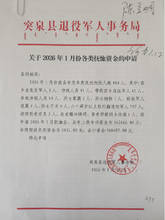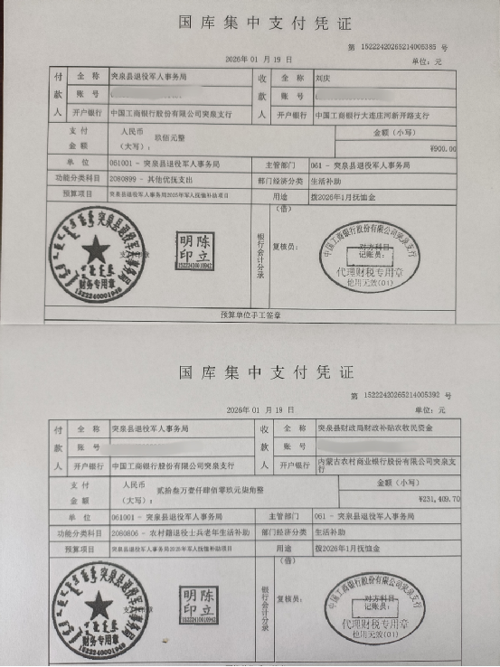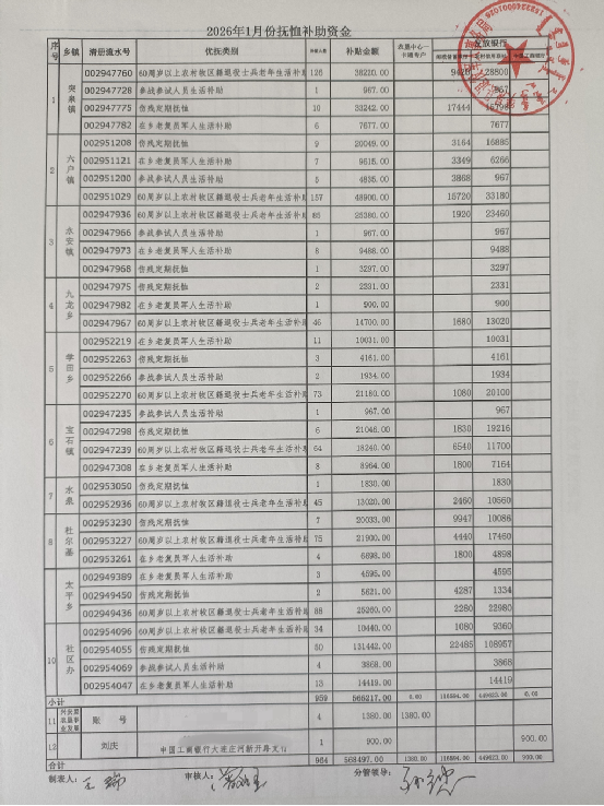 退役军人事务局2026年1月优抚抚恤清册