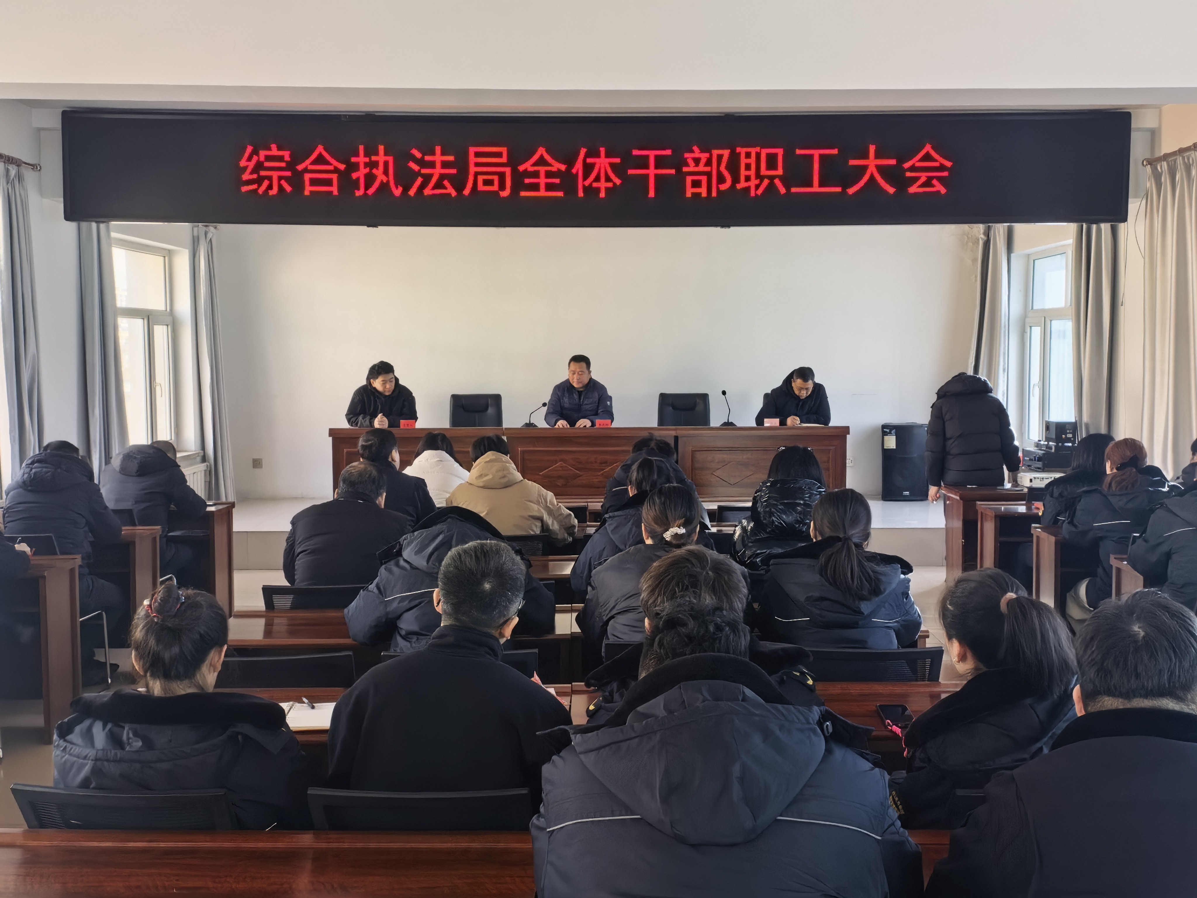 在全体干部职工大会上,局主要负责同志全面回顾了过去一年综合执法工作取得的成效。过去一年,全局干部职工坚守执法一线,圆满完成各项重点任务,执法效能持续提升,群众满意度不断增强。会议同时深入分析了当前工作面临的新形势、新挑战,明确了新一年度的工作思路与目标任务,号召全体干部职工以更加饱满的热情、更加务实的作风,投身到新一年的执法工作中,奋力开创综合执法事业新局面。