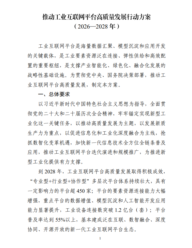 推动工业互联网平台高质量发展行动方案 (2026-2028年)