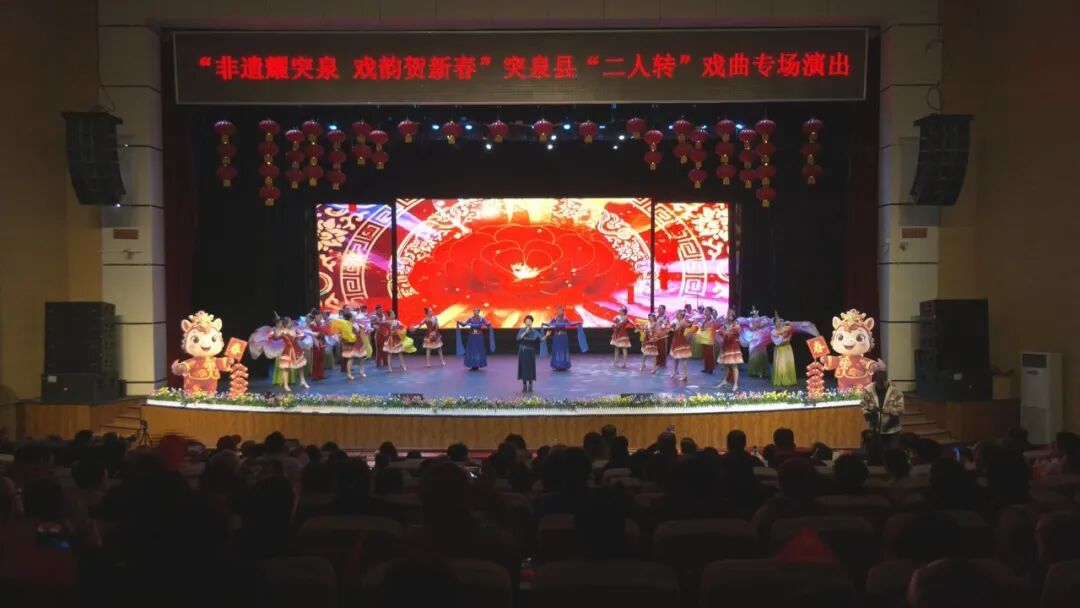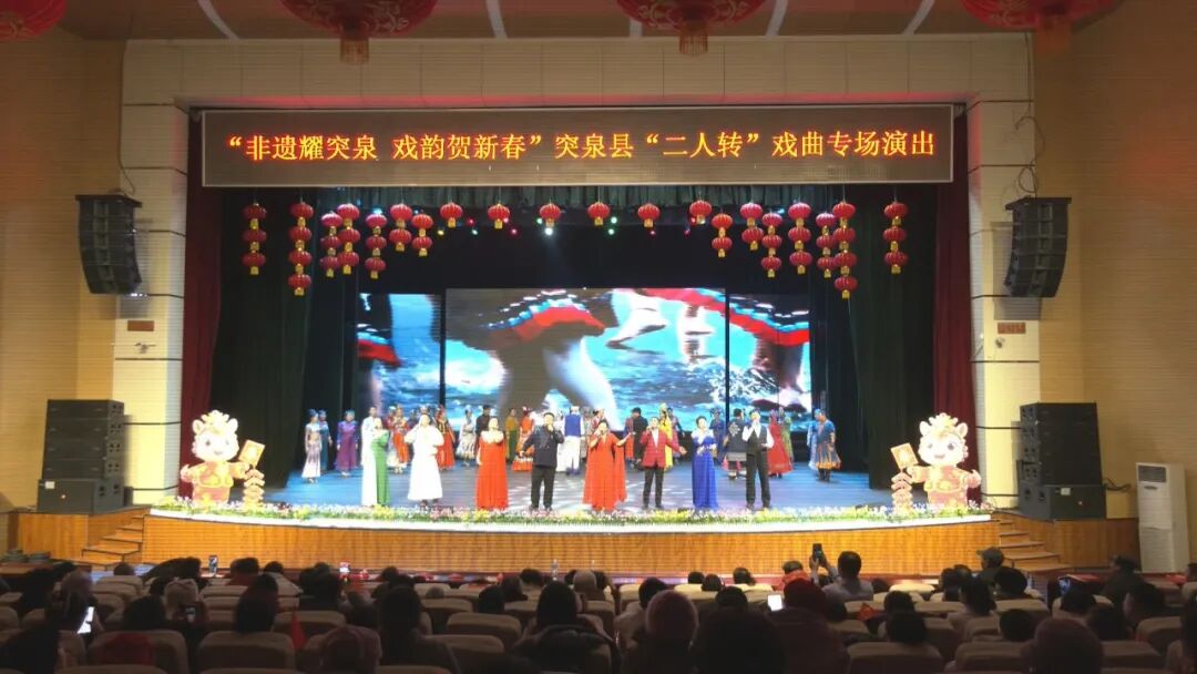 3月1日晚,“非遗耀突泉 戏韵贺新春”突泉县二人转戏曲专场演出在县青少年活动中心热闹开演。整场演出共16个精品节目,集结全县优秀文艺力量,以群众喜闻乐见的非遗戏曲为载体,唱响家乡赞歌、传承传统文化,为广大群众送上一场年味十足、戏韵浓厚的文化好戏。