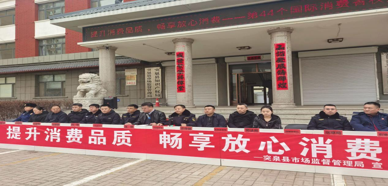 为迎接 3・15 国际消费者权益日,切实提升消费品质、保障群众放心消费,3月13日上午,突泉县市场监督管理局联合宣传部、司法局、农牧和科技局、公安局等多家单位,开展以 “提升消费品质 畅享放心消费” 为主题的消费者权益保护系列宣传活动,聚焦农畜产品安全核心领域,多形式开展普法宣传与民生服务,筑牢群众 “舌尖上的安全” 防线。县农科局党组成员、副局长徐云祥,农畜产品质量安全监管股、突泉县农畜产品质量服务中心及相关工作人员参加活动。